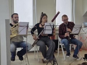 Dziś w naszym przedszkolu odbyło się kolejne spotkanie z muzykami z Filharmonii Warmińsko-Mazurskiej, którzy zaprezentowali dzieciom swoje instrumenty – waltornię, fagot oraz klarnet. Przedszkolaki mogły nie tylko posłuchać koncertu, ale też dowiedzieć się, jak brzmią wspomniane instrumenty.