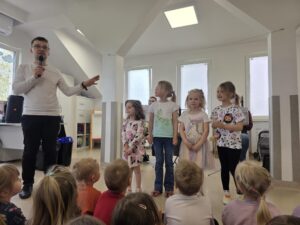 Całe wydarzenie przebiegło w radosnej atmosferze. Dzieci z ogromnym zaangażowaniem uczestniczyły w spotkaniu, chętnie naśladowały gesty prowadzącego i z zainteresowaniem śledziły każdy dźwięk. To była piękna lekcja muzyki i tańca.