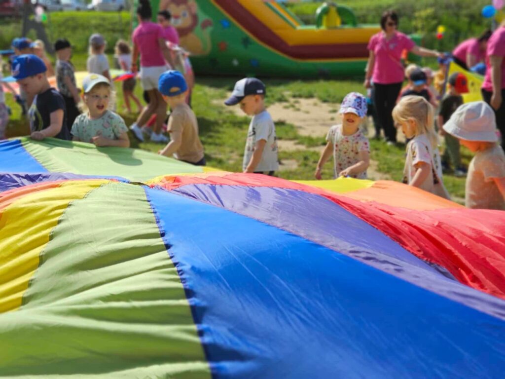 Na placu zabaw pojawił się dmuchany zamek, kolorowe bańki mydlane, były zabawy taneczne i sportowe. Nie zabrakło również słodkich przyjemności – lody, popcorn i wata cukrowa były wisienką na torcie tego wyjątkowego dnia.